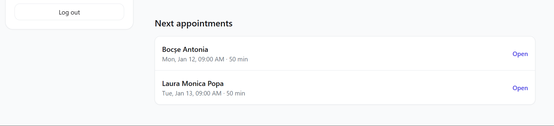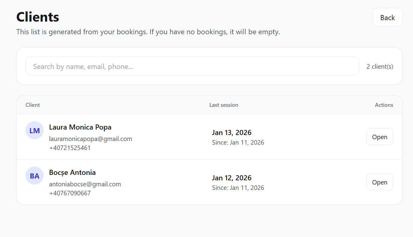 - Instrumente utile pentru terapeuți (programări, clienți, notițe).