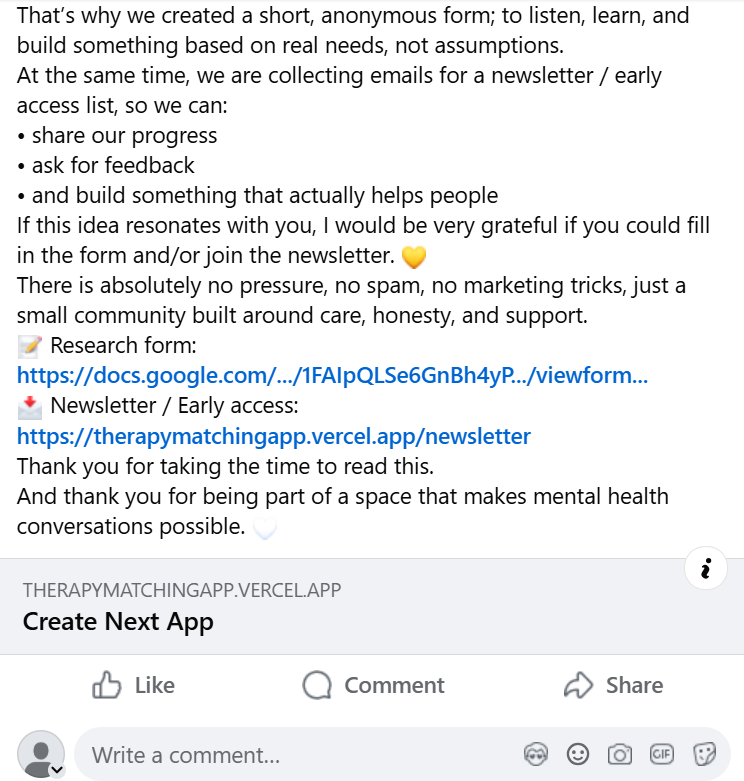 Newsletter + lead collection (Formspree) pentru a valida interesul real (proof în Milestone 3 / 5).
