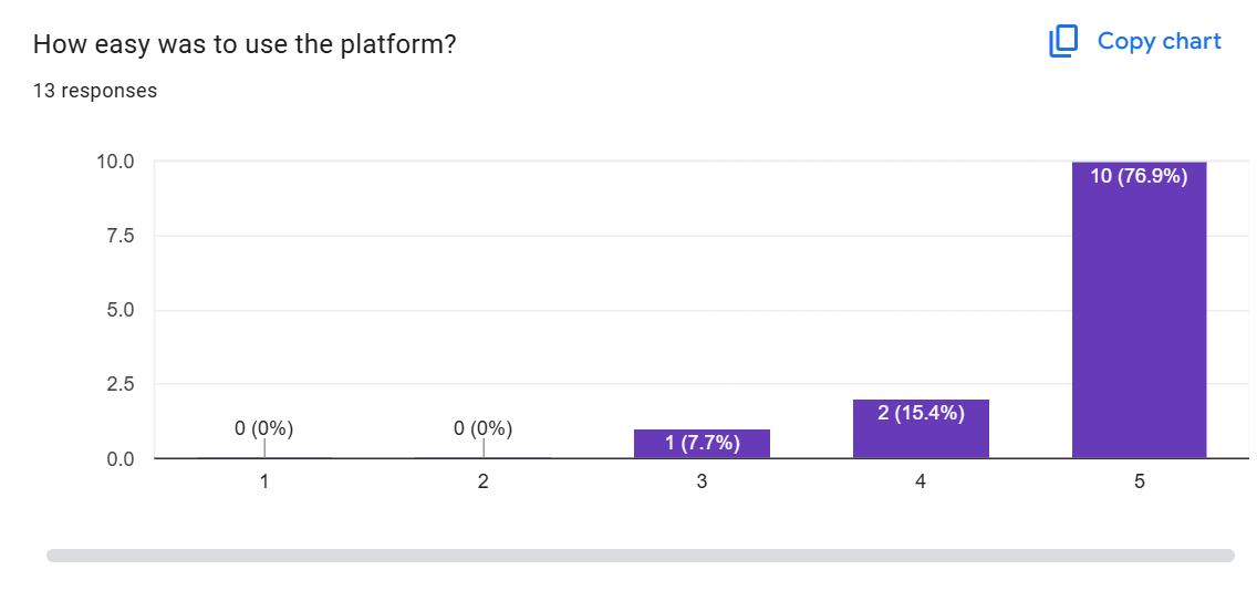 - Ușurință în folosire: 76.9% au dat 5/5, 15.4% au dat 4/5, 7.7% au dat 3/5.